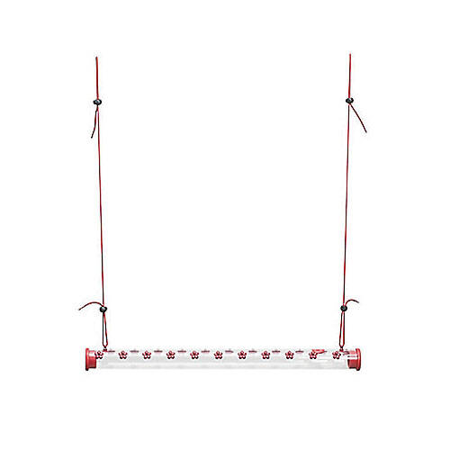 Perky-Pet®'s horizontal hanging 2 ft Hummerbar® hummingbird feeding tube offers a revolutionary way to feed more hummingbirds at one time. Nectar filled Hummerbar® is a 2 ft plastic tube offering 22 feeding ports and when compared to other hummingbird feeders, is easy to clean. Patented feeder hangs horizontally while delivering plenty of nectar for hummingbirds. Feeder ports are made of plastic molded in red, a color proven to attract hummers. Each port is spaced just right to allow hummingbirds to feed side-by-side! The feeder is built of a clear plastic feeding tube, which allows you to easily monitor nectar levels.