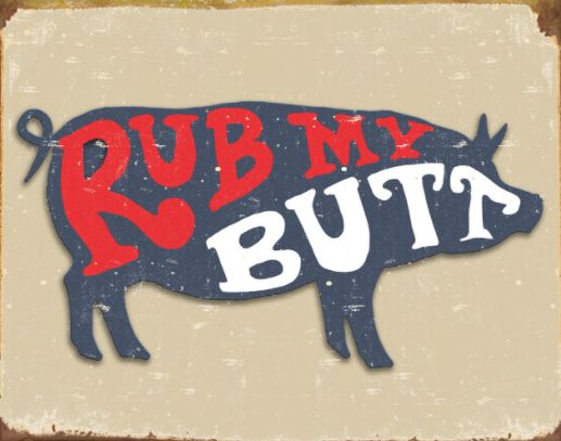 16 x 12-1/2-Inch Pork Rub My Butt Rectangular Tin Sign