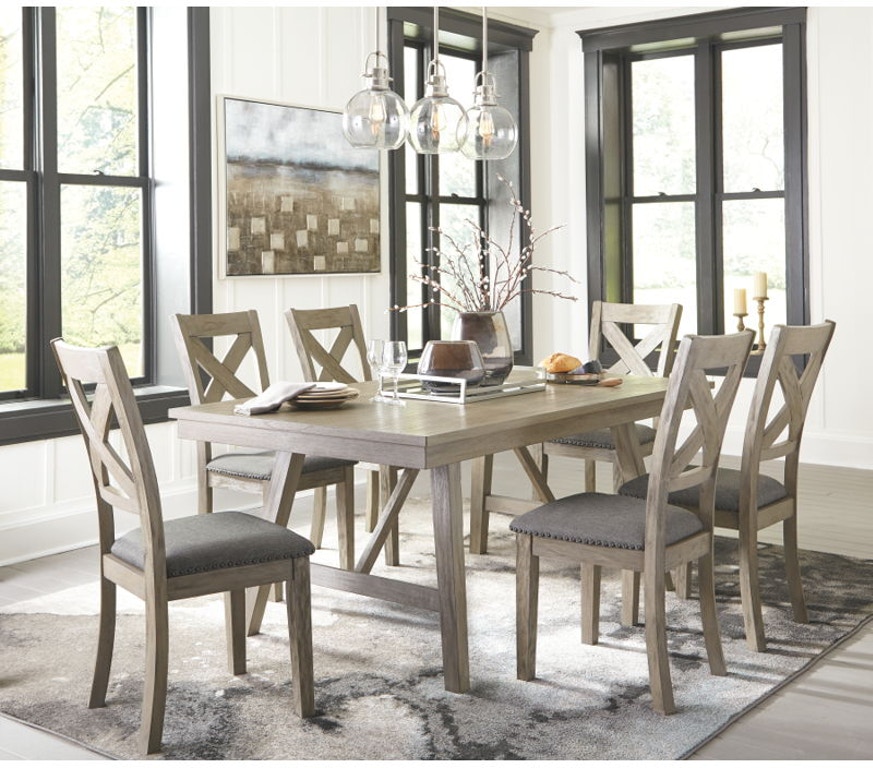 Modern farmhouse has never looked better. The Aldwin dining chair set allures with its soothingly soft gray hue and wire-brushed finish. Equal parts cozy and chic, this duo will have you wanting to stay in with family a little while longer.