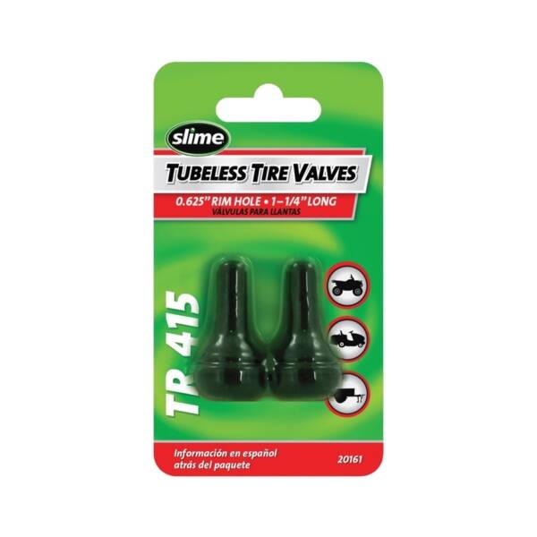 Replace your worn and leaky TR415 tire valves. Featuring a 5/8 in rim hole, these tubeless tire valves are 1-1/4 in long and snap-in easily to your TR415 tires. Package contains two tire valves.