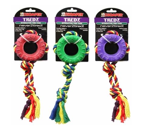 Tredz Rubber Tire And Rope Tug And Toss Dog Toy, Assorted