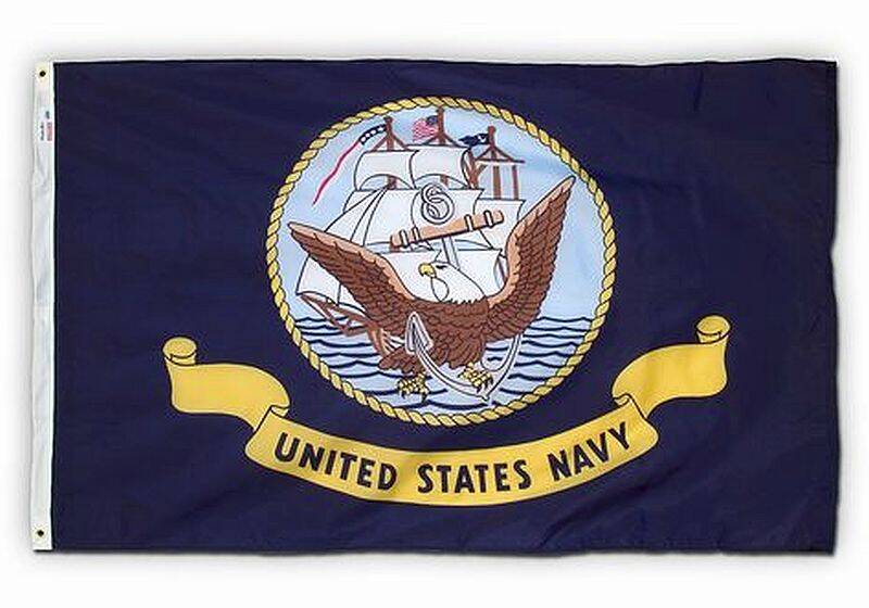 This 3 x 5-foot printed nylon Navy flag comes with brass grommets. Flag is 100% made in the U.S.A.