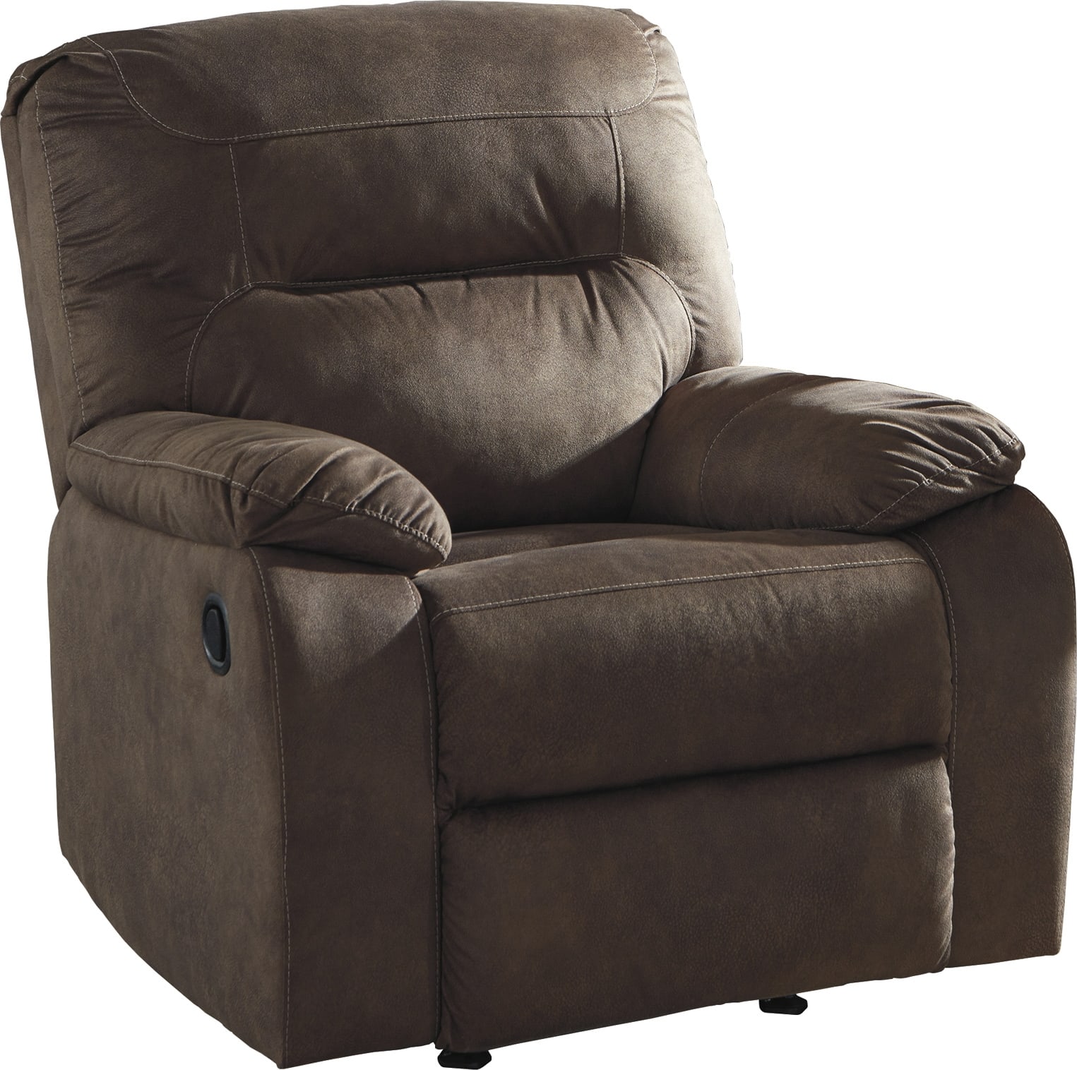 Looking for a sleek seat? The Bolzano rocker recliner is your saving grace. Coffee brown microfiber cover is soft to the touch and padded for your comfort. Beautiful lines exhibit exceptional craftsmanship. Smaller-than-normal scale brings quality to even compact spaces. Now you can worry less about finding the perfect recliner for your room and relax more.
