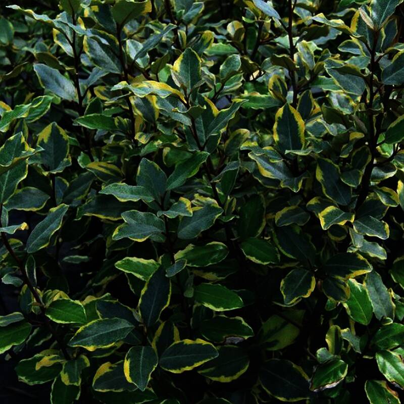 Attractive irregular yellow-gold leaf margins and silvery new growth are striking. Has fragrant white flowers in the fall. With an upright dense growth habit, reaches 10 to 15 ft tall and wide. Perfect hedge for a milder climate.