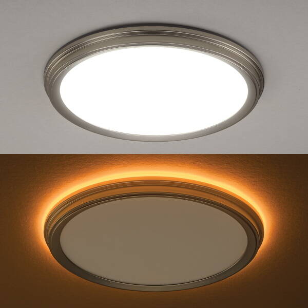 ETI Flushmount with Color Preference and Nightlight, 120 V, Wattage Rating: 14 W, Lamp Type: Integrated LED, Average Life: 50,000 hr, Color Rendering Index (CRI): 80, Color Temperature: 3000, 4000, 5000 k, Lumens: 900, Shade Material: Acrylic, Ballast/Driver Type: Triac Dimmable, Fixture Finish: Brushed Nickel, Dimensions: 11 in Dia x 1.7 in H