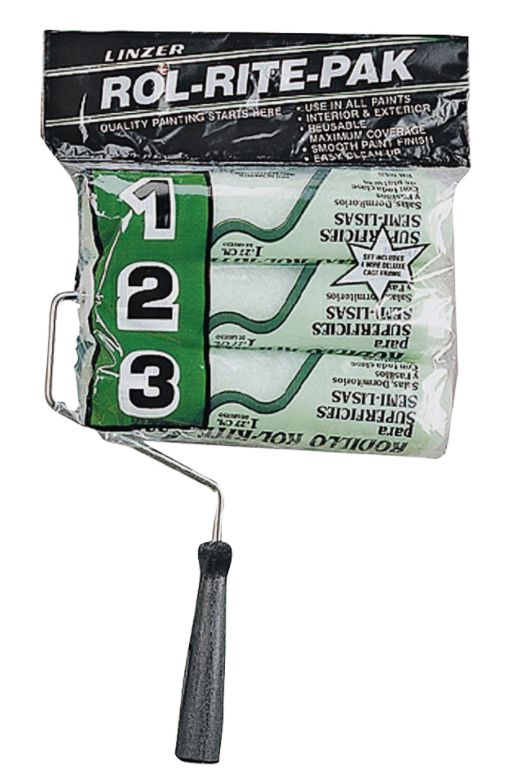 Includes one 9 in No.RF 200 roller frame and three 9 in x 3/8 in nap roller covers. 4-wire cage roller frame with plated 1/4 in rod and threaded plastic grip; deluxe, heavy-duty roller covers for all paints.