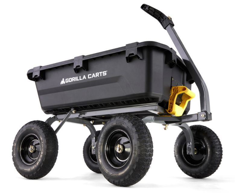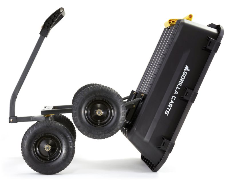• Patented 2-in-1 handle allows cart to be towed behind a lawn tractor or ATV or pulled easily by hand