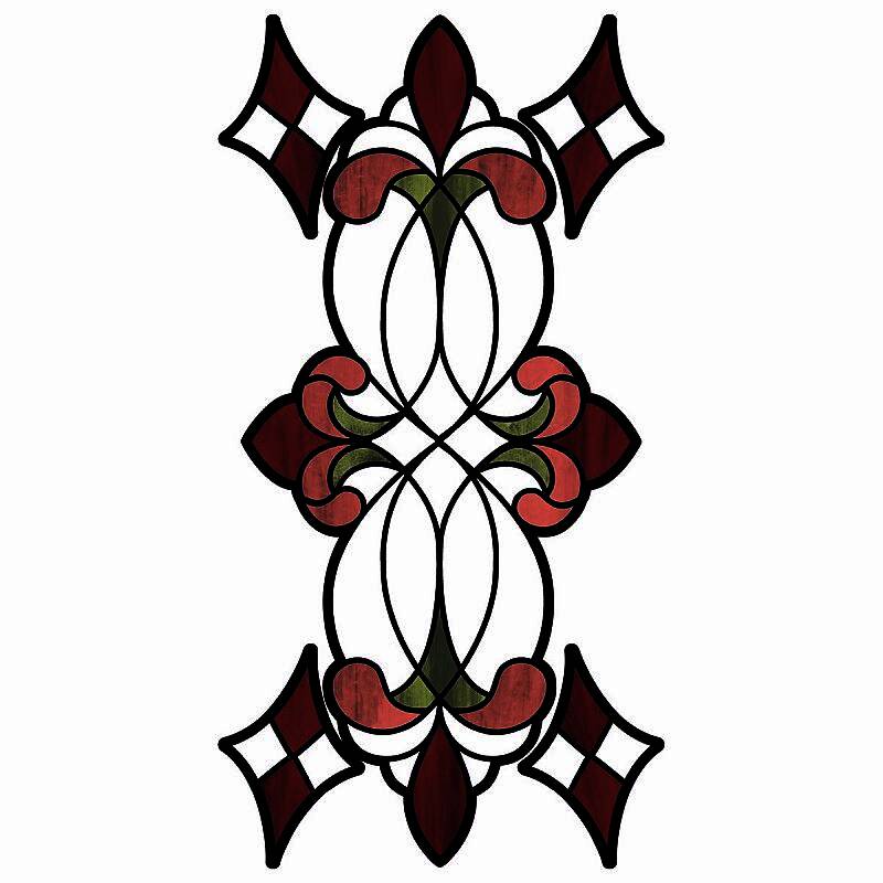 • Red and grey stained glass decal