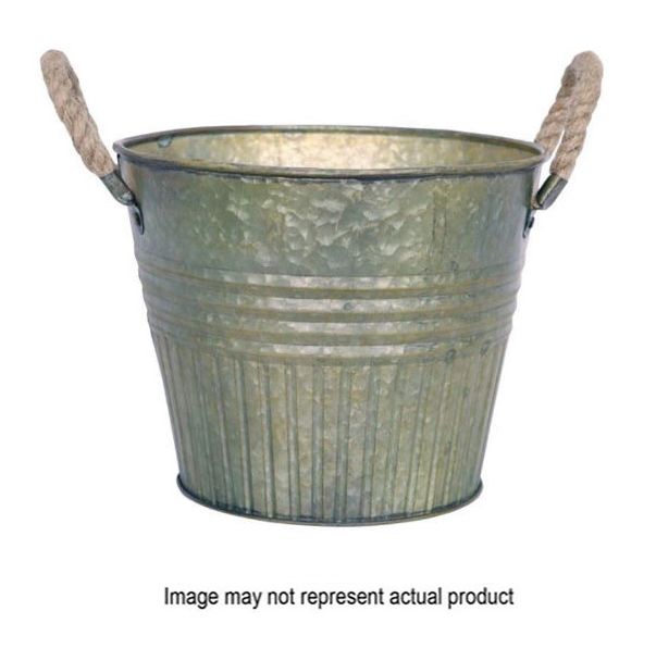 8-Inch Round Aged Nickel Planter With Rope Handles
