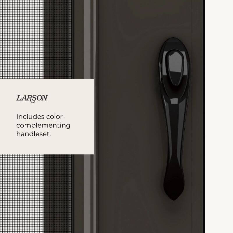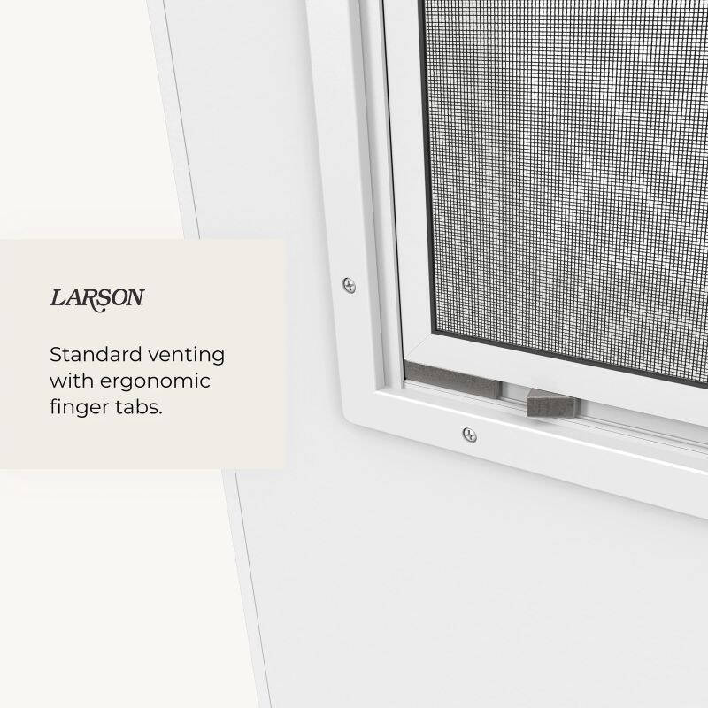 Experience fresh air and weather protection in one with the Larson Vinyl Clad Midview Storm Door. Enjoy easy access to the outdoors with a pinch-free screen and solid wood core to keep you cozy.