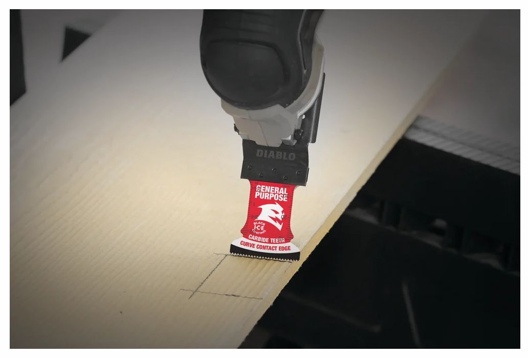 Diablos universal fit carbide oscillating blades feature application specific designs that deliver extreme durability and superior cutting life in general purpose cuts: nail-embedded wood, clean wood, metal and plastics. High-performance carbide teeth deliver an unmatched up to 50X longer cutting life versus standard bi-metal blades. Curve contact edge creates a pilot for precise, clean plunge cuts with less vibration. An optimized blade design and Black I.C.E. (Industrial Cooling Element) keeps the teeth cool and build up free for fast, clean cuts. The blades universal fit, adapter-free design easily attaches to most tools, with the exception of Starlock tools.