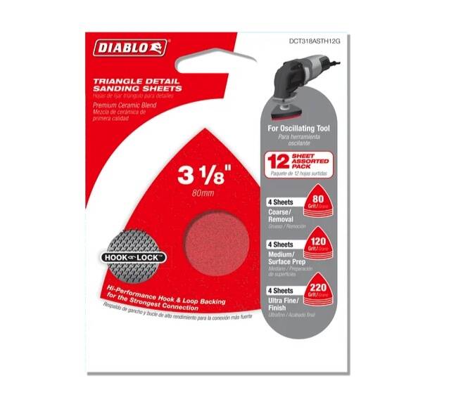 3-1/8-Inch Assorted Oscillating Detail Triangle Sanding Sheet, 12-Pack
