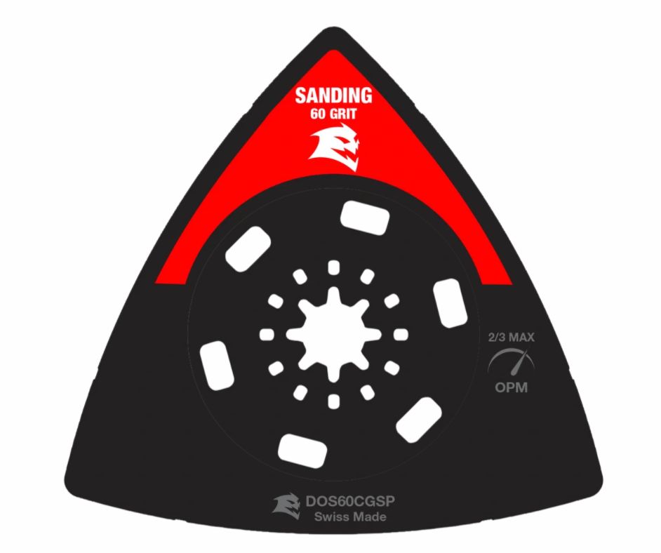 Diablos Starlock oscillating sanding plates feature application specific designs that deliver maximum durability and longer life in sanding applications. A 60-Grit sanding plate quickly removes and levels paints and varnishes. Open-coat carbide grit reduces material build-up and clogging for longer life. Tool free quick-change interface fits Fein and other Starlock tools; also compatible with most non-Starlock multi-tools.