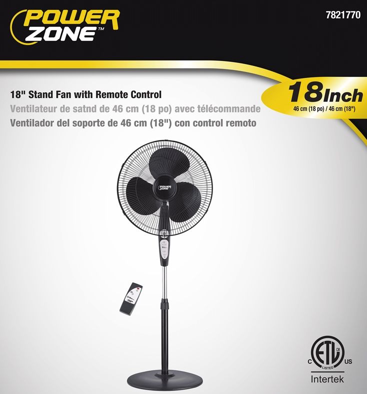18-Inch Black Stand Fan With Remote Control