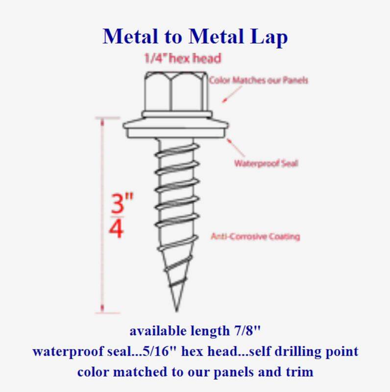 Our 7/8-inch Lap Screw is used to attach metal panels together. They are color matched to MBS panel colors, have a self-drilling point and a 5/16-inch hex head for a waterproof seal.
