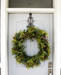 This beautifully crafted wreath hanger hook can adjust 5-19 in from the top of the door. It's capable of holding a wreath up to 20 lbs and is padded to protect your door from damage.
