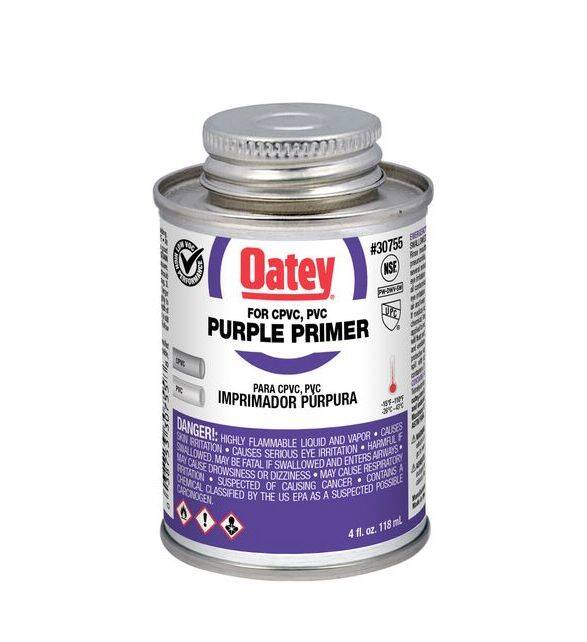 Oatey® Purple Primer is formulated for PVC and CPVC pipe and fittings. Removes surface dirt, grease, and grime as well as softens the pipe surface to allow a fast, secure solvent weld. Oatey products have earned the trust of plumbing professionals for over 100 years.
