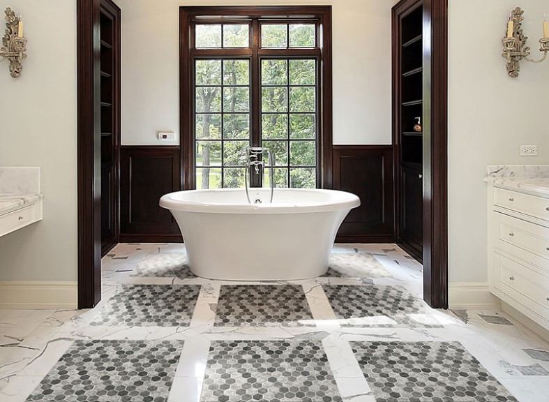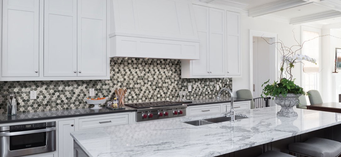 Urban Tapestry Hexagon Mosaic Tile is a 2-inch recycled glass mosaic backsplash tile that strikes the perfect balance between traditional and contemporary with neutral colorways of soft gray, creamy white, and deep charcoal. Durable, low-maintenance, and highly versatile, this mosaic gives residential and light commercial spaces a touch of visual intrigue. It’s perfectly suited for a kitchen backsplash, but why stop there? You can also use it on countertops, accent walls, shower walls, or to give a nook distinct personality. This tile is Greenguard Indoor Air Quality Certified® and comes mounted on mesh-backed sheets for a simplified installation and professional finish.