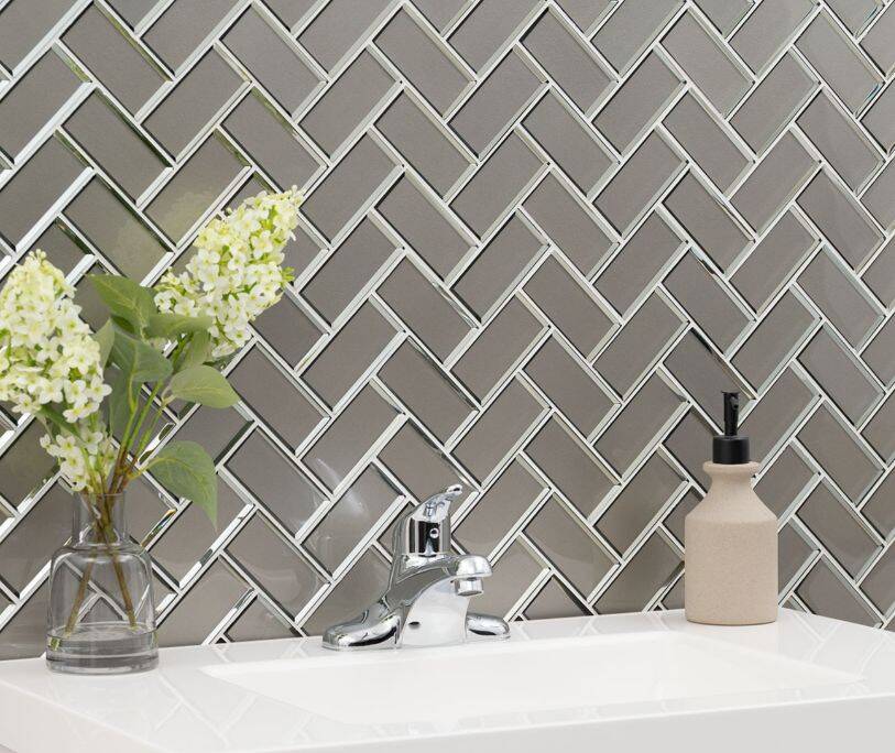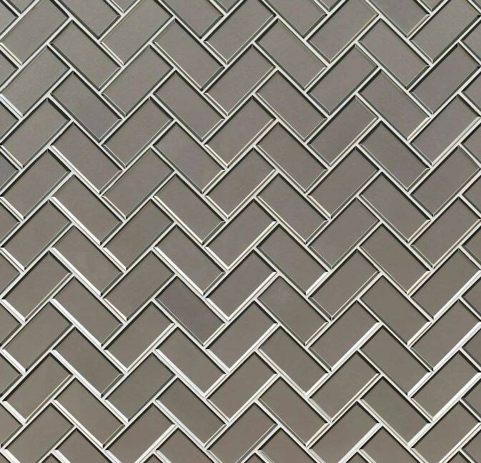 Champagne Beveled Herringbone Tile features a neutral soft brown hue and distinctive beveled edge which adds character and visual interest to your space. These durable crystalline glass tiles are mesh-backed allowing for easy installation of a sophisticated herringbone pattern. Low-maintenance, water, stain, and mildew-resistant, it’s perfect for backsplash, accent walls, showers, and various vertical applications in residential and commercial projects.