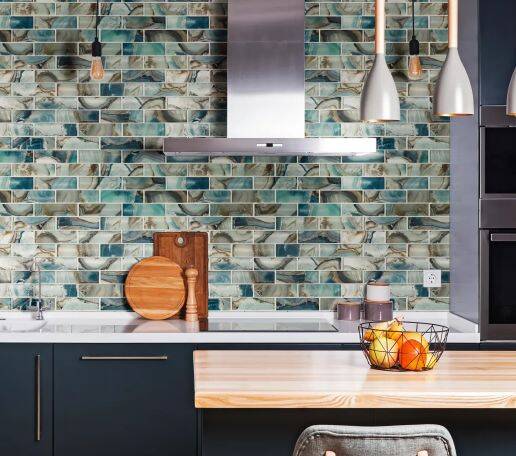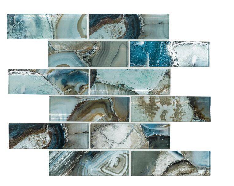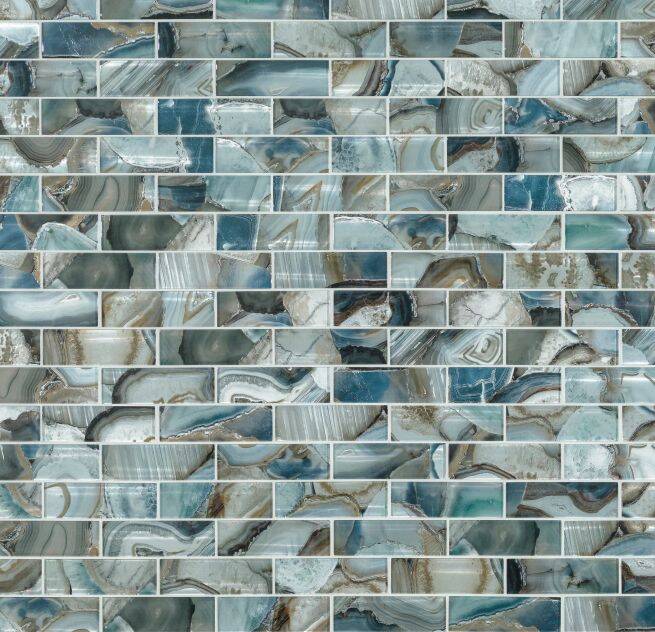 Night Sky Subway Tile is a contemporary take on classic subway tile. Featuring gorgeous shades of blues, greens, and browns, this natural stone look glass tile adds color and interest to backsplash, vanity walls, shower surrounds, fireplace facades, and countertops. Low-maintenance, water, stain, and mildew-resistant it’s the perfect choice for your residential or light commercial project. This tile is Greenguard Indoor Air Quality Certified® and comes mounted on mesh-backed sheets for a simplified installation and professional finish.
