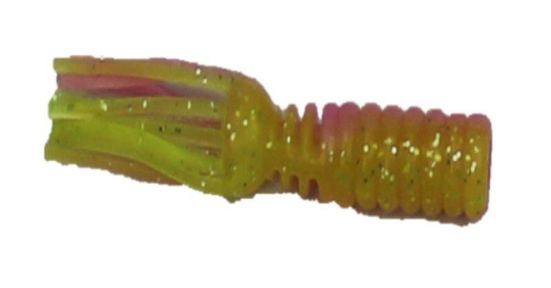 This Hybrid Tube design combines the flukes of a swimming jig, with the skirt of a traditional tube. The unique combination of garlic and baitfish scents not only triggers strikes, but will entice the fish to hold the bait longer resulting in better hookup ratios. It pairs perfectly with any of the Big T crappie jig heads for an action that catches fish when theyve seen everything else!