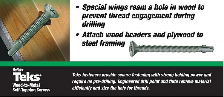 • Reamer wings winged screws self-drill into wood and engage metal to provide a secure hold