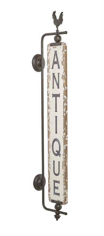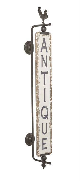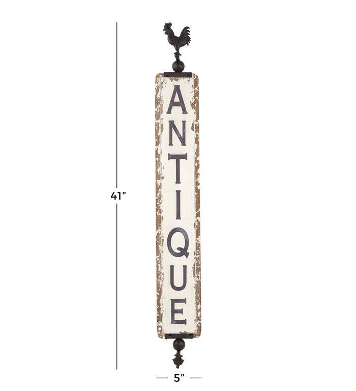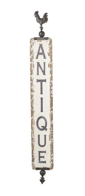 15 x 53-Inch Metal & Wood Antique Sign With Rooster