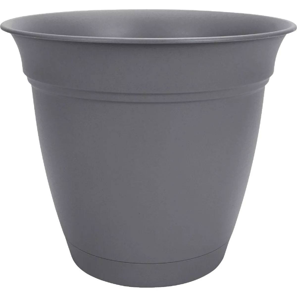 Eclipse flower planter. Features a removable attached saucer. Ideal for indoor and outdoor spaces. Contemporary design for modern styling. Matte finish resists scratches, dirt, and fingerprints. Features pre-drilled drainage holes on the bottom. Lightweight and durable plastic is ultraviolet resistant, will not crack or fade over time.