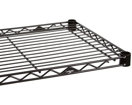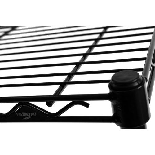 Customize your storage space with the 18 in InterMetro Shelf. Each storage shelf includes the plastic sleeves necessary to install onto coordinating support posts at one inch increments allowing you to build a custom shelving unit to tackle heavy duty storage and organization needs. Create versatile storage shelving to accommodate your needs with this Black 18 in InterMetro Shelf. A great solution to handle storage needs in the garage, workshop, basement, office, supply room or kitchen pantry. Industrial grade steel construction with a durable black epoxy finish.