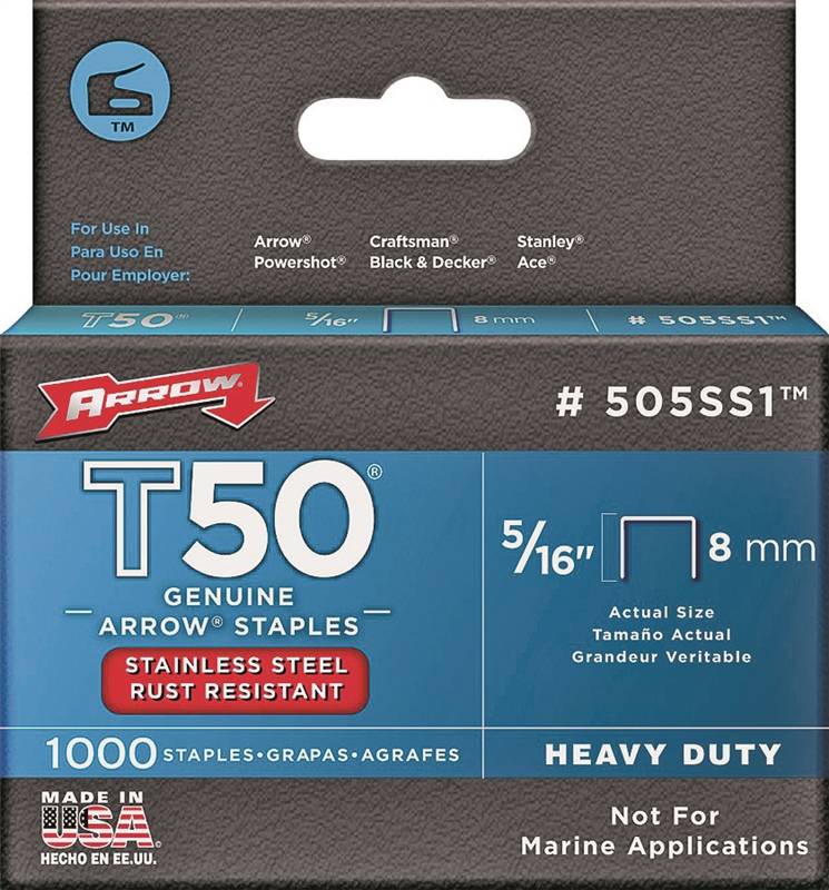 For use with Arrow model No. HT-50A, T50, and T55 series staple guns. Use in areas that need the protection of stainless steel to help fight corrosion. These are not made of 'Monel' which is for use in areas exposed to salt water.