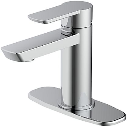 Fits 1 or 3 hole installation. Metal lever handle. Hybrid body. Ceramic cartridge. Push pop-up. Optional deck plate included.