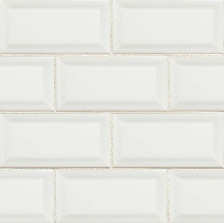 White Beveled Subway Tile 3x6 is a glossy white ceramic wall tile with beveled edges for a 3-dimensional look. The modern update on a classic is perfect for countertop and wall applications for various design styles. It goes well with porcelain mosaic wall tiles, including arabesque tile, and natural stone tiles and slabs.