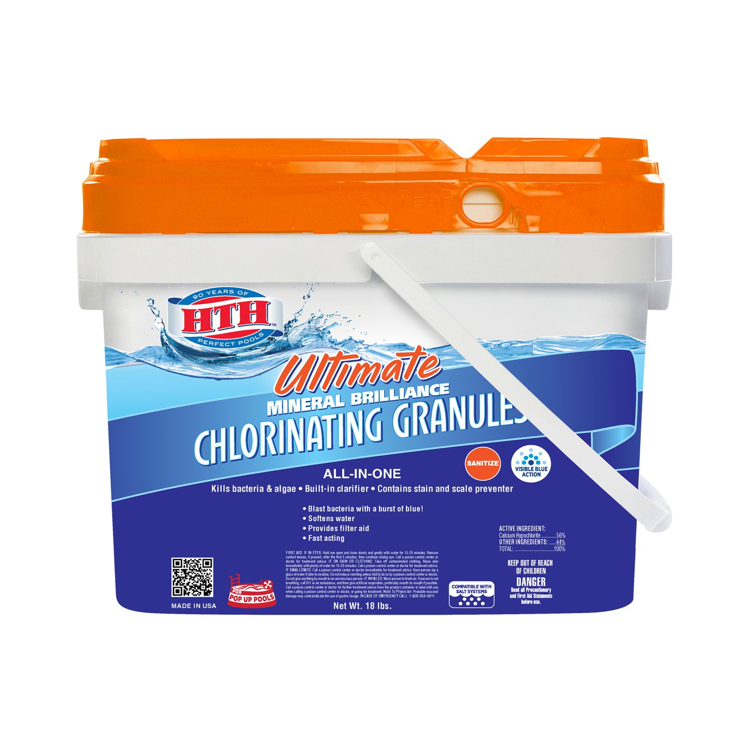 Keep your pool inviting, clean, and clear. In only 24 hours, HTH Ultimate Mineral Brilliance Chlorinating Granules sanitize and clarify, and even soften pool water. The multi-functional 7-in-1 action can also help to prevent stain and scale formation while effectively guarding against bacteria, algae and other organisms.