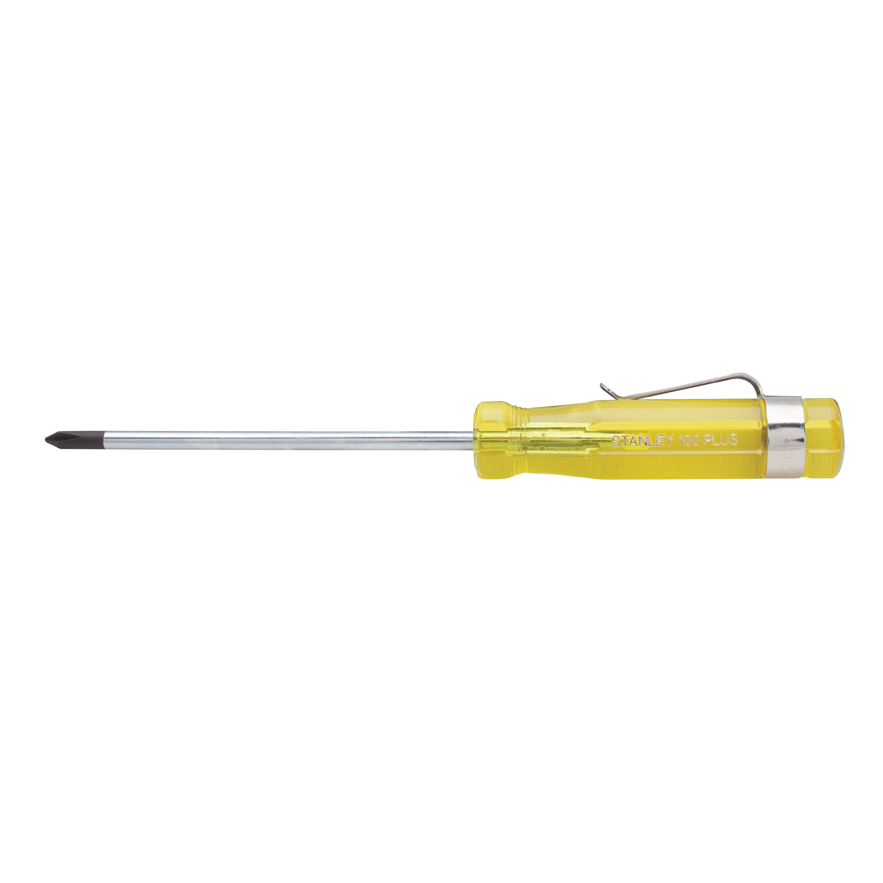 This STANLEY® 100 PLUS® Screwdriver is built to withstand heavy-duty applications with its 100% acetate handle. This versatile screwdriver works well in a multitude of applications making it a must-have in your toolbox. The pocket clip allows for easy access while on the job.
