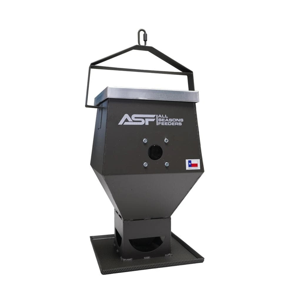 With the newly redesigned ASF bird feeder, you can bring the beauty of nature to your backyard! Comes with chain to hang from any tree or post. Holds approximately 20lbs of bird seed.