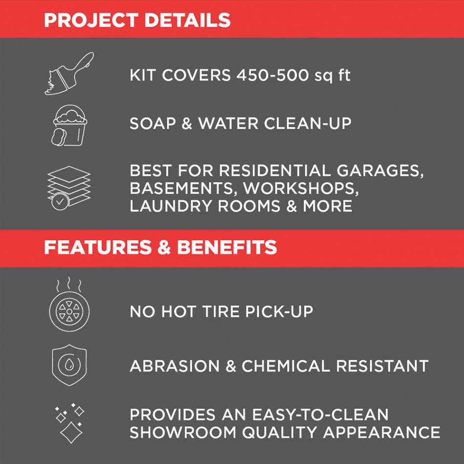 • Suitable for use on interior concrete surfaces: garages, basements, workshops and more