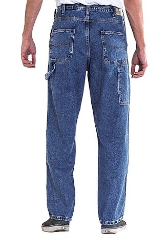 Light Wash Denim Loose Fit Natural Rise Straight Leg Men's Carpenter Jeans, 32 in L X 40 in W