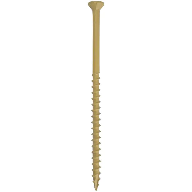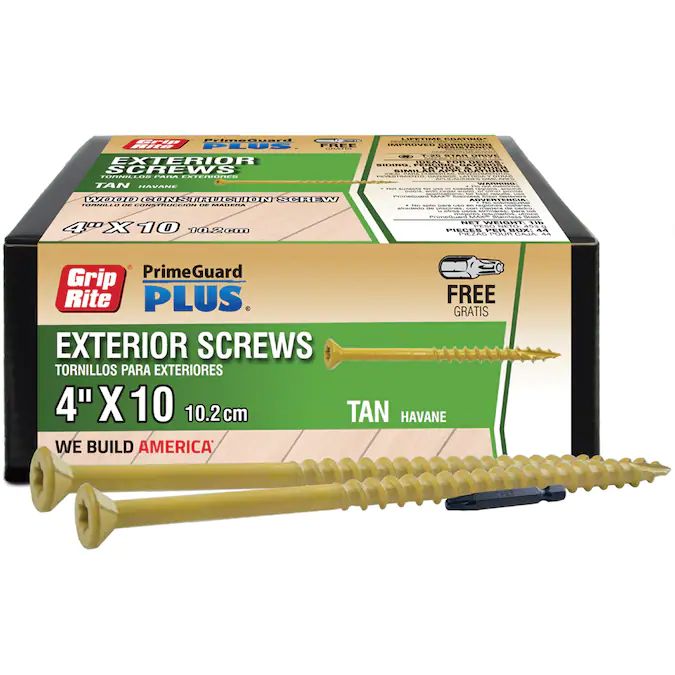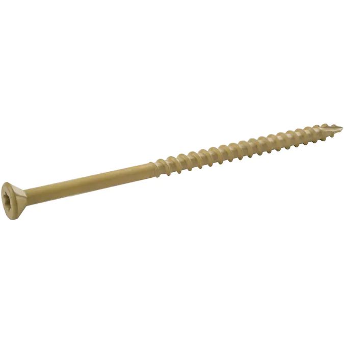 For exterior applications, including decks, siding, gazebos, and playsets. Countersinking bugle head prevents heads from popping out, leaves smooth finish. Type 17 point reduces need to pre-drill boards. This tan, #10 exterior screw is 4 in long and comes in a 1-pound box containing approximately 44 screws.