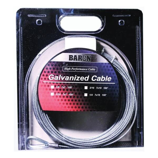 PRE-CUT GALVANIZED 7X19 - ELECTROGALVANIZED STEEL Dia.Ins x Lgth. Ft=3/16 x 50