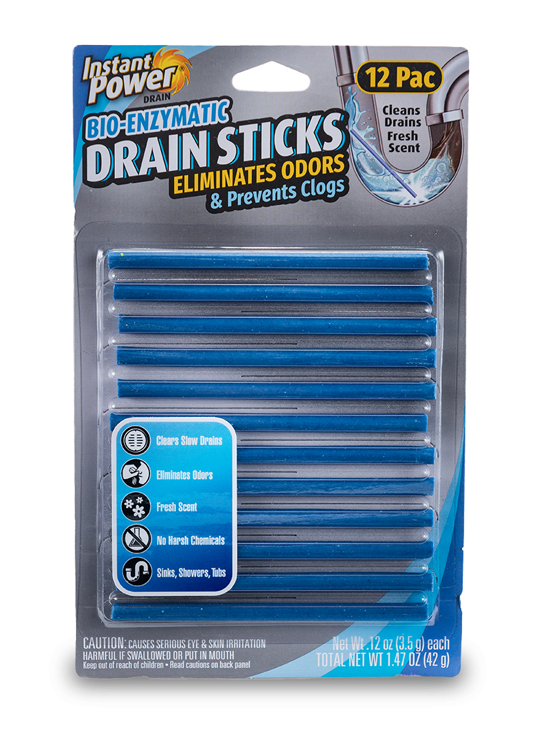 Instant Power has over 50 years in the drain business. Our Bio-enzymatic Drain Sticks are the environmental solution to drain maintenance and drain odors. Our Bio-enzymatic formula will break down soap scum, food, grease and organic matter while eliminating unpleasant drain odors by digesting odor causing residue. Our concentrated sticks are safe on all pipes and not only safe on septic systems, but actually beneficial. Bio-enzymatic Drain Sticks can be used in any drain in the household (as long as it fits through the drain cover) RVs and marine vehicles.