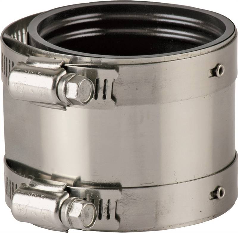 Connects no-hub drain pipes on any combination of plastic, steel or extra-heavy cast iron pipes. Series 300 stainless steel shield and neoprene gasket. Not recommended for underground use. Meets ASTM C-1173, C1460-2000, C1277-97. Gasket meets ASTM C-0564. SHIELDED Size In=3