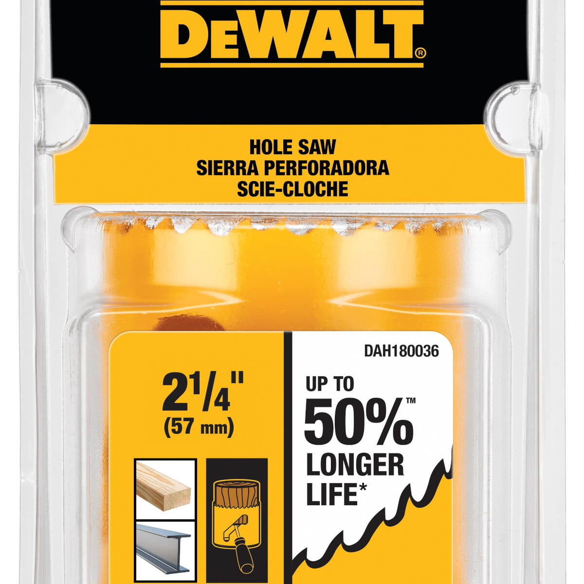 - Up to 50% longer life - patented tooth forms optimize chip removal for efficient drilling and long life, vs prior generation DEWALT bi-metal hole saws cutting black pipe