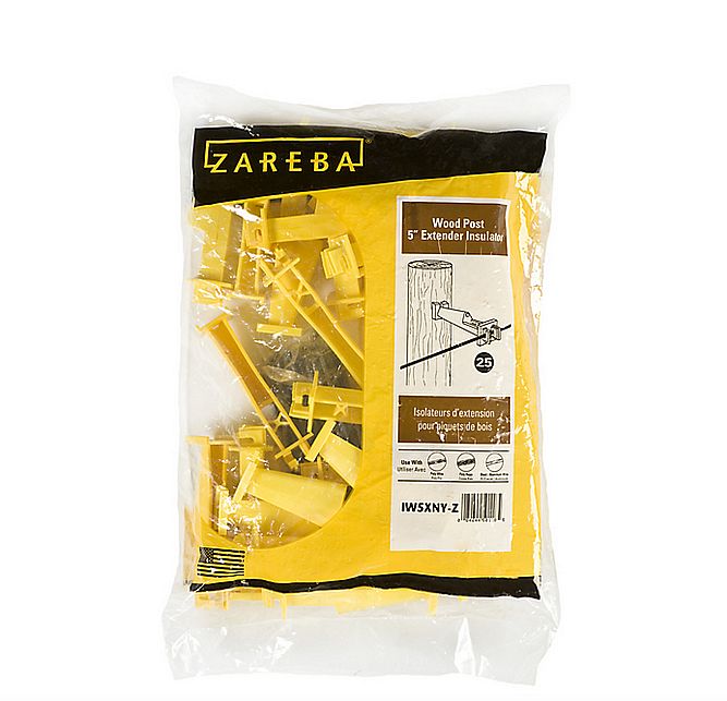 The Zareba® Nail-on 5 Extender Insulator extends the wire 5 from the wooden post. It can be used with all gauges of wire. These electric fence insulators are available in two color options - Black or Yellow.