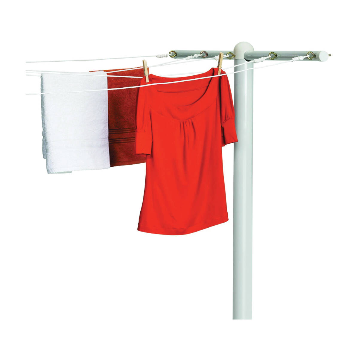 Attractive and eco-friendly, this powder-coated steel outdoor drying T-post is durable and rust-resistant. Permanently installed, the 3 in Dia post provides stability for heavy loads and strength against the elements. Attach up to 5 lines to the substantial 45 in cross arm. Embed in cement to install post, string your clothesline, knot and tighten with the included eyehooks and it's ready for use. Designed for post-to-wall installation, the T-post attaches two or more T-posts for a freestanding system.