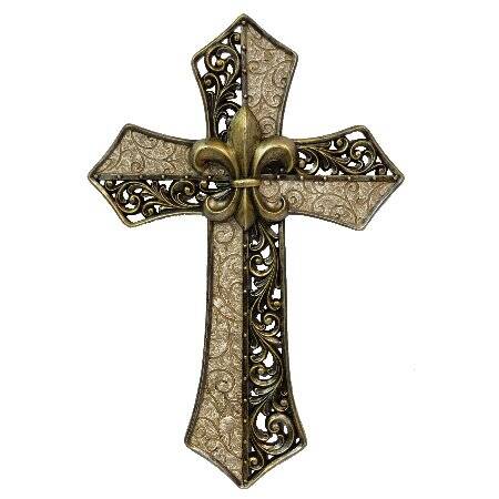 Brown/Beige Fleur De Lis Cross, 9 X 1 X 14-Inch