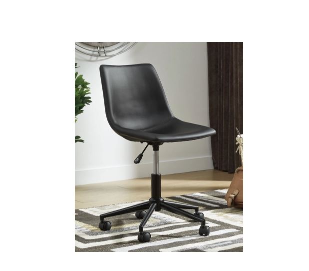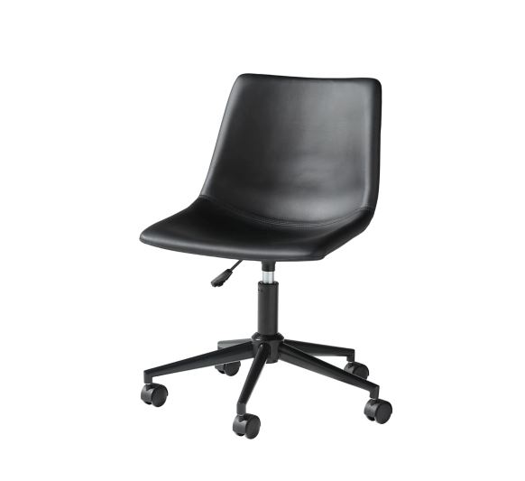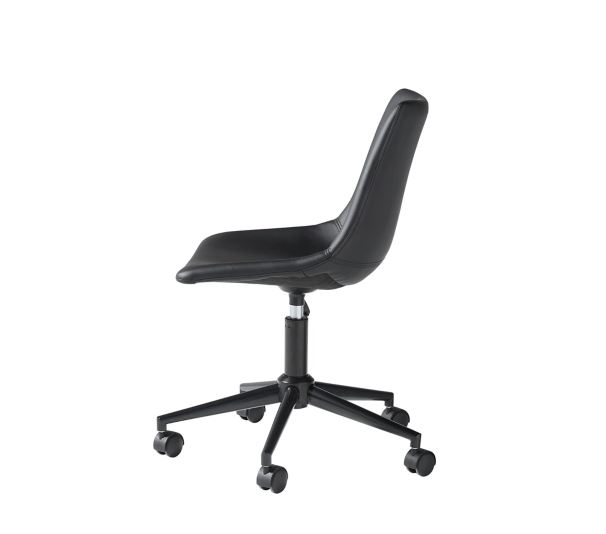 Working an ultra-cool sense of style just got a whole lot easier thanks to this swivel home office desk chair. Upholstered bucket seat covered in a black faux leather merges mid-century flair with modern comfort.