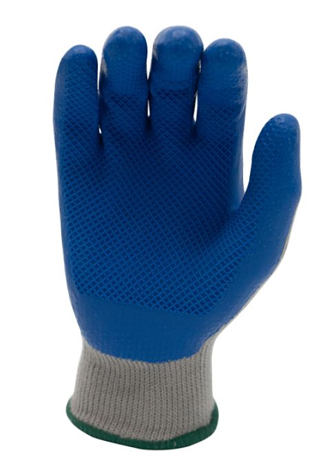 Blue latex crinkle palm coating gives this all-purpose utility glove excellent durability. Soft poly-cotton blended liner keeps hands protected while offering breathability. Seamless knitted wrist closure ensures a great fit every time while keeping debris from entering the glove. Great grip in both wet and dry conditions.