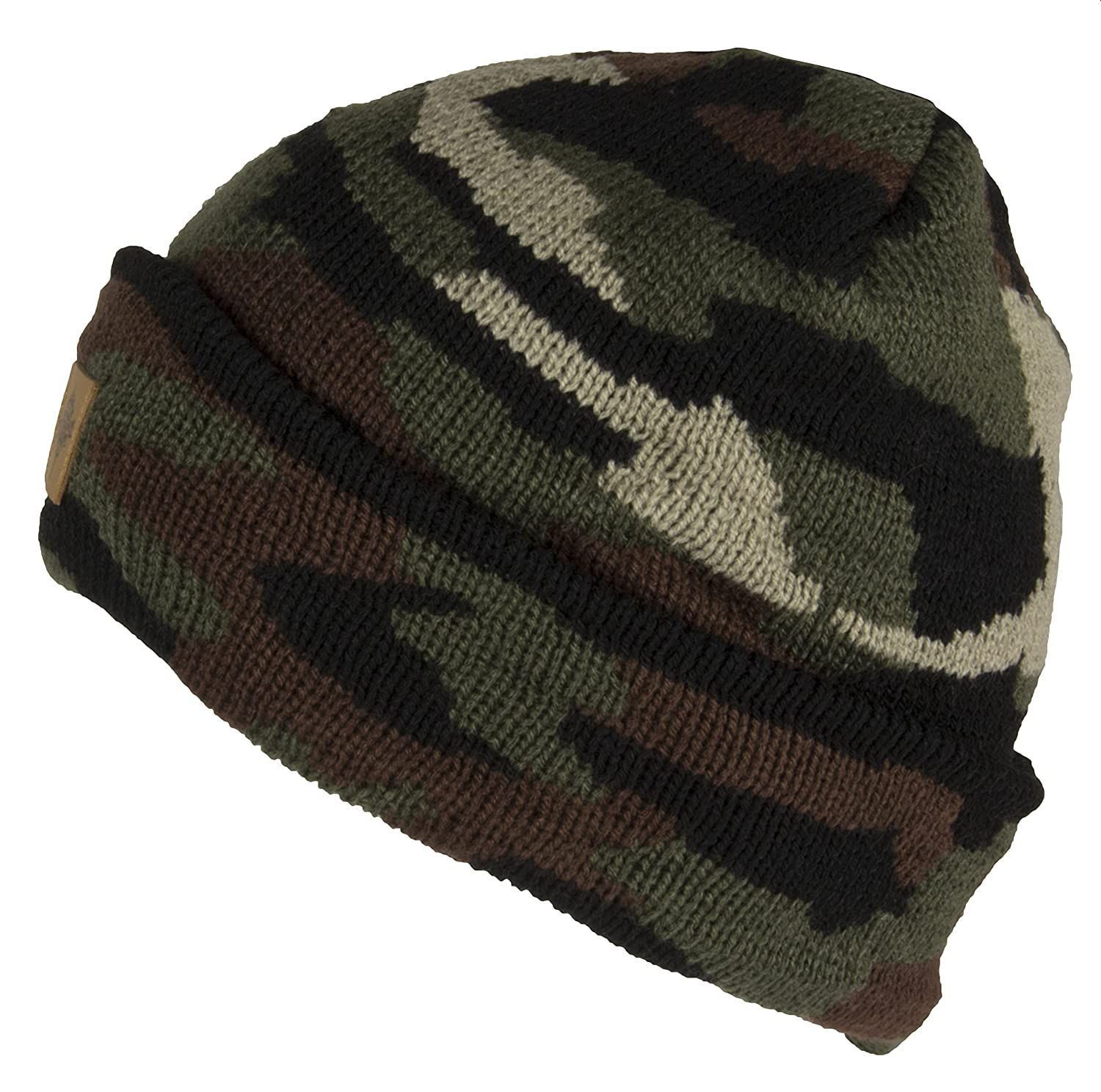 Camouflage, thick-lined, warm beanie. One size fits most. 100% acrylic.