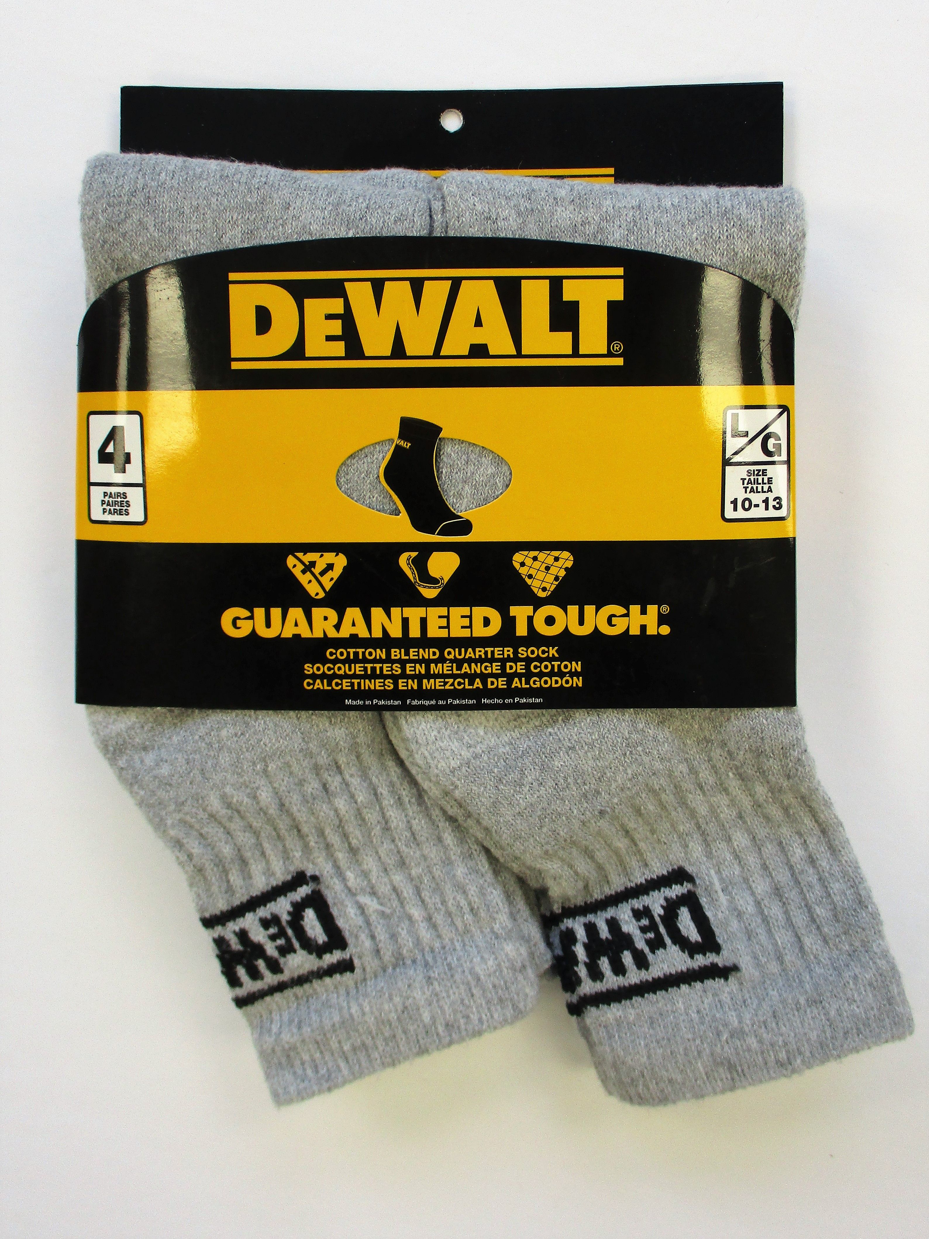 DeWALT® Athletic Quarter Sock, Moisture Wicking, Full Cushioned Sock, Anti-Microbial, White/Grey 4-Pack
