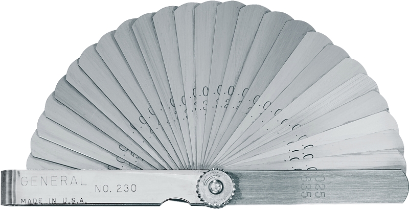 The #230 Economy Straight Leaf Feeler Gauge is ideal for adjusting and gauging spark plugs, distributor points and valve clearances, as well as measuring spaces between parts.